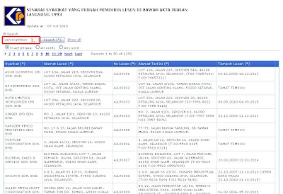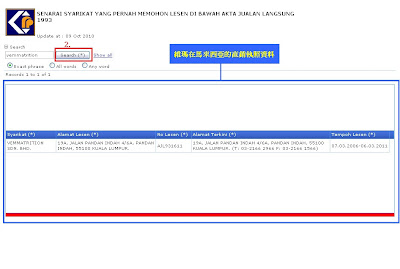 再按下Search,就可以看到維瑪在馬來西亞直銷執照的資料囉^^(如圖):